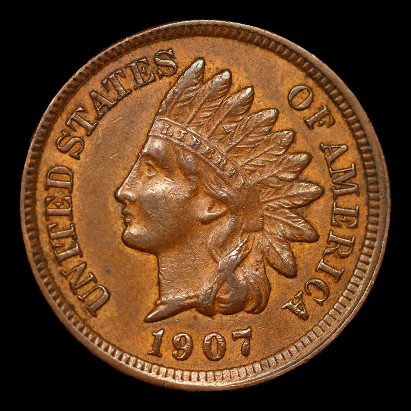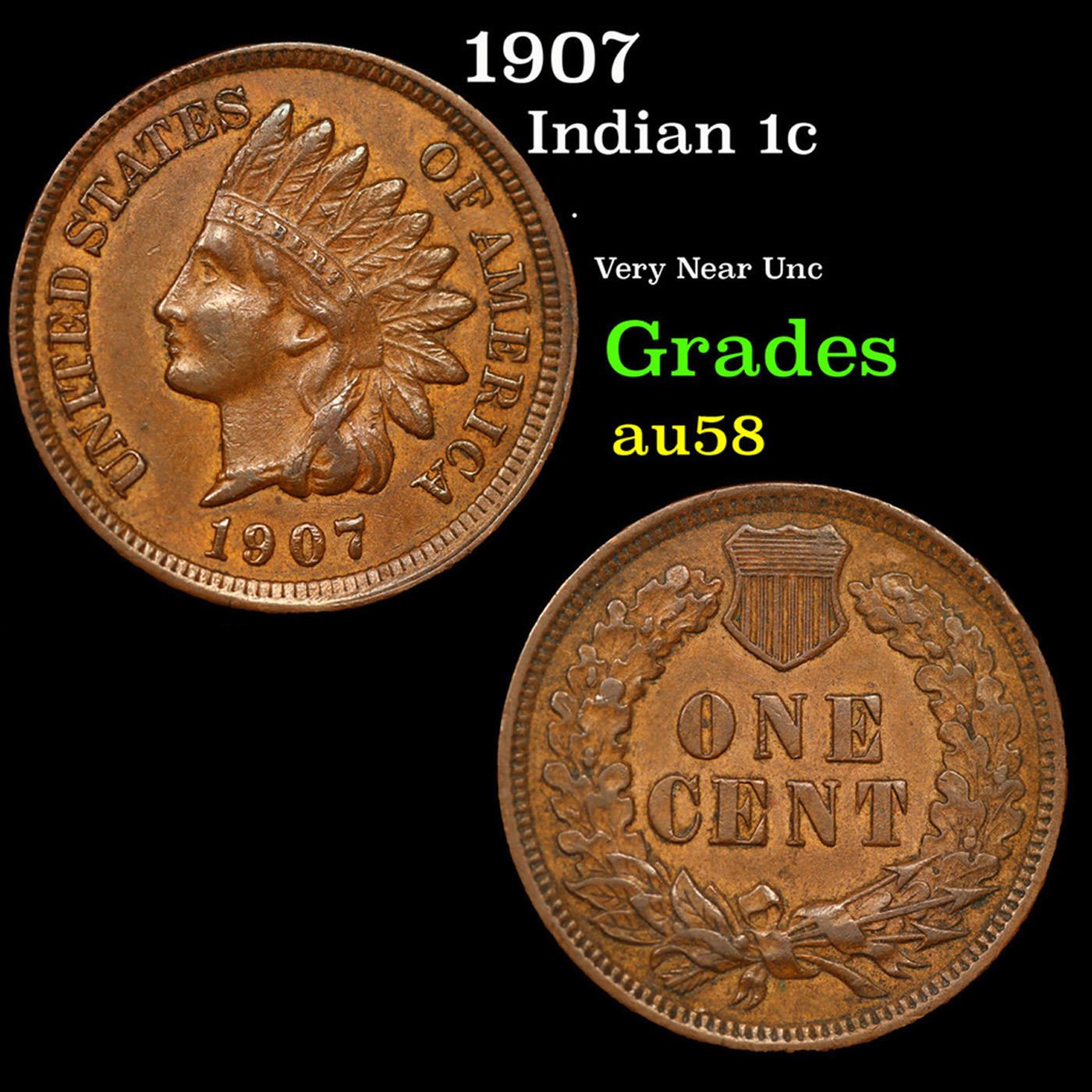 1907 Indian Cent 1c Grades Choice AU/BU Slider.