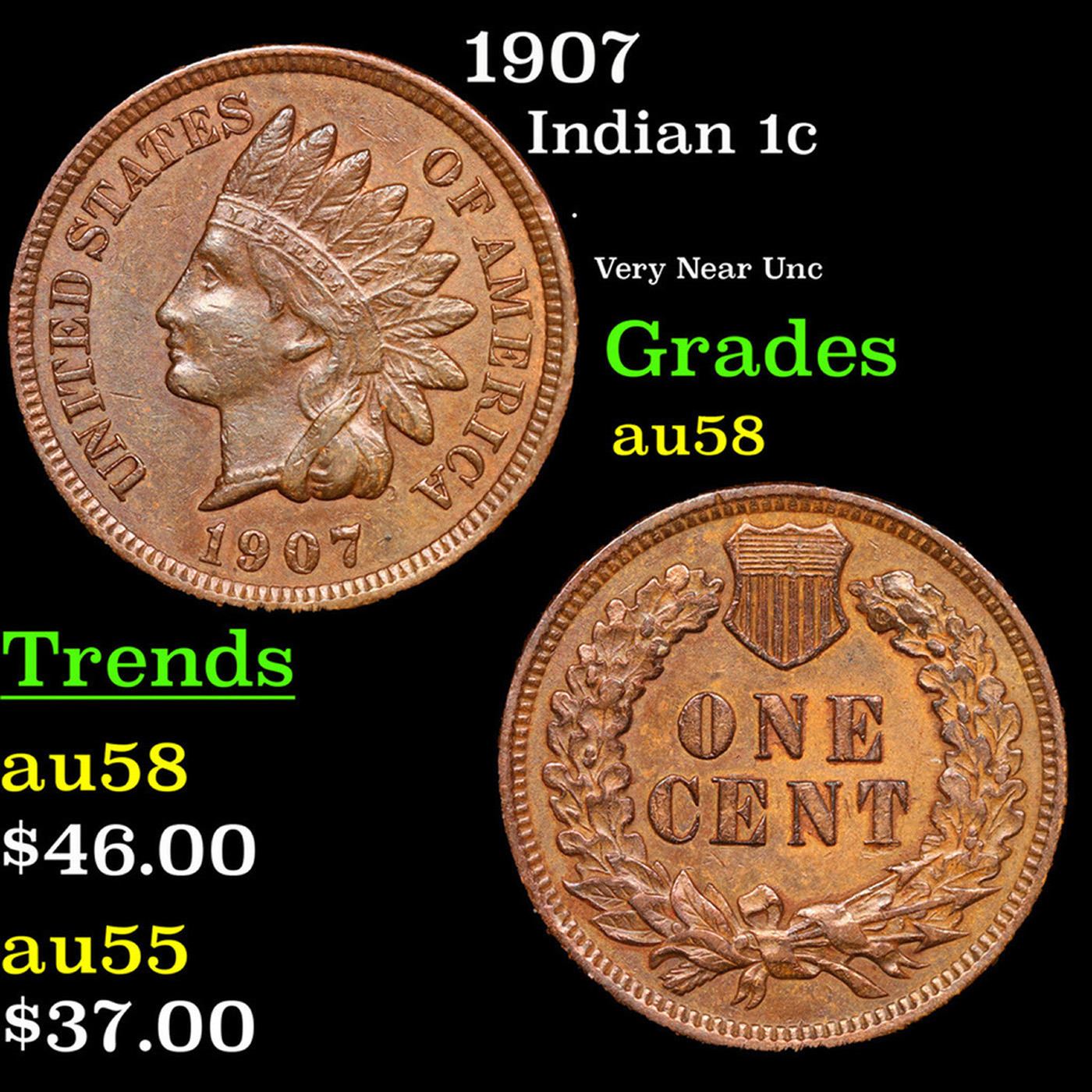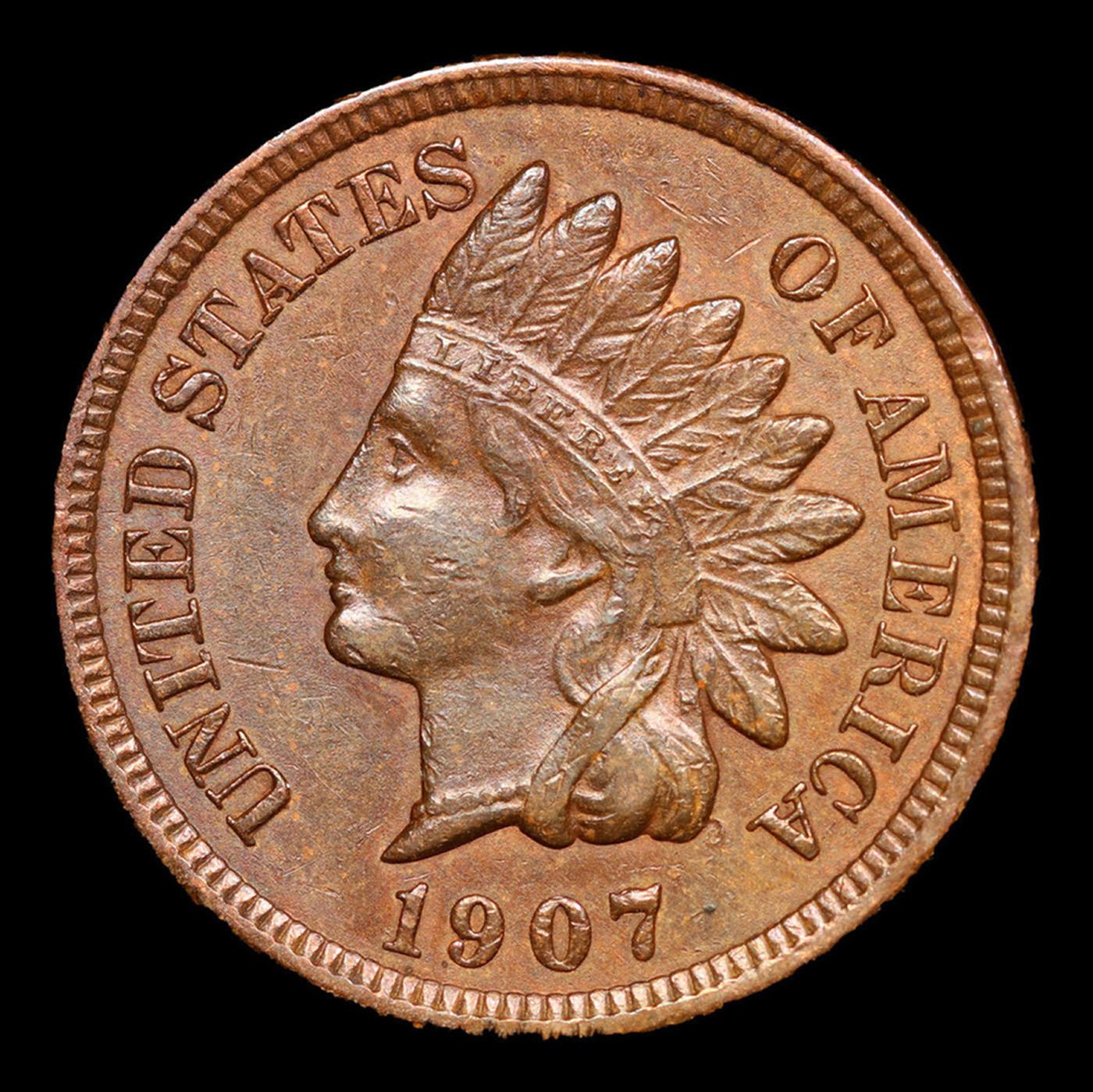 1907 Indian Cent 1c Grades Choice AU/BU Slider.