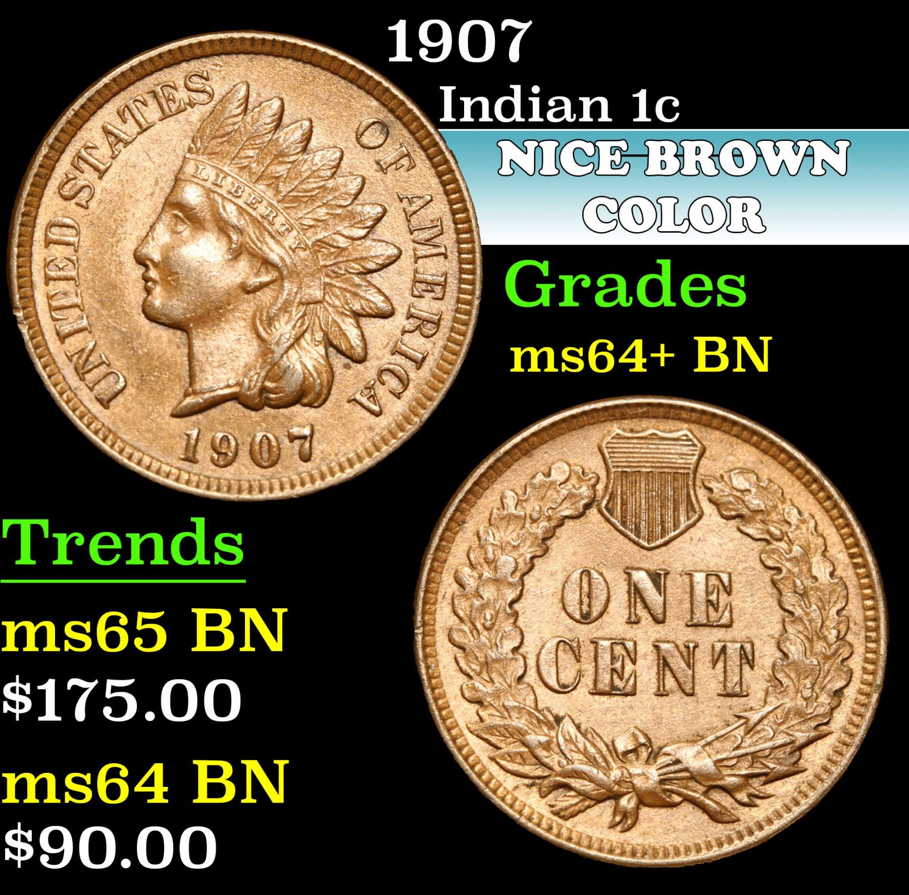 1907 . . Indian Cent 1c Grades Choice+ Unc BN.
