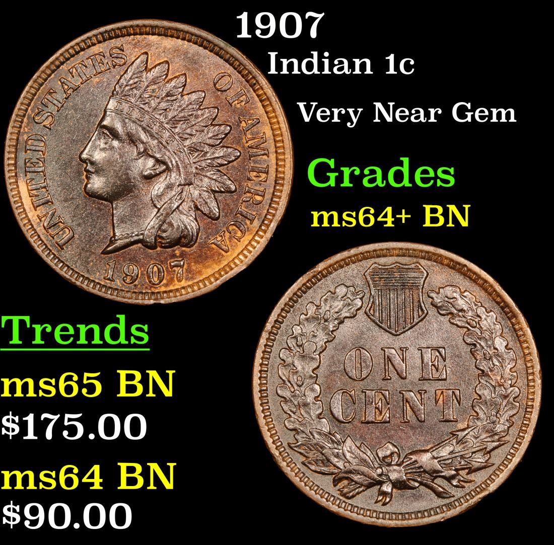 1907 . Very Near Gem Indian Cent 1c Grades Choice+ Unc BN.