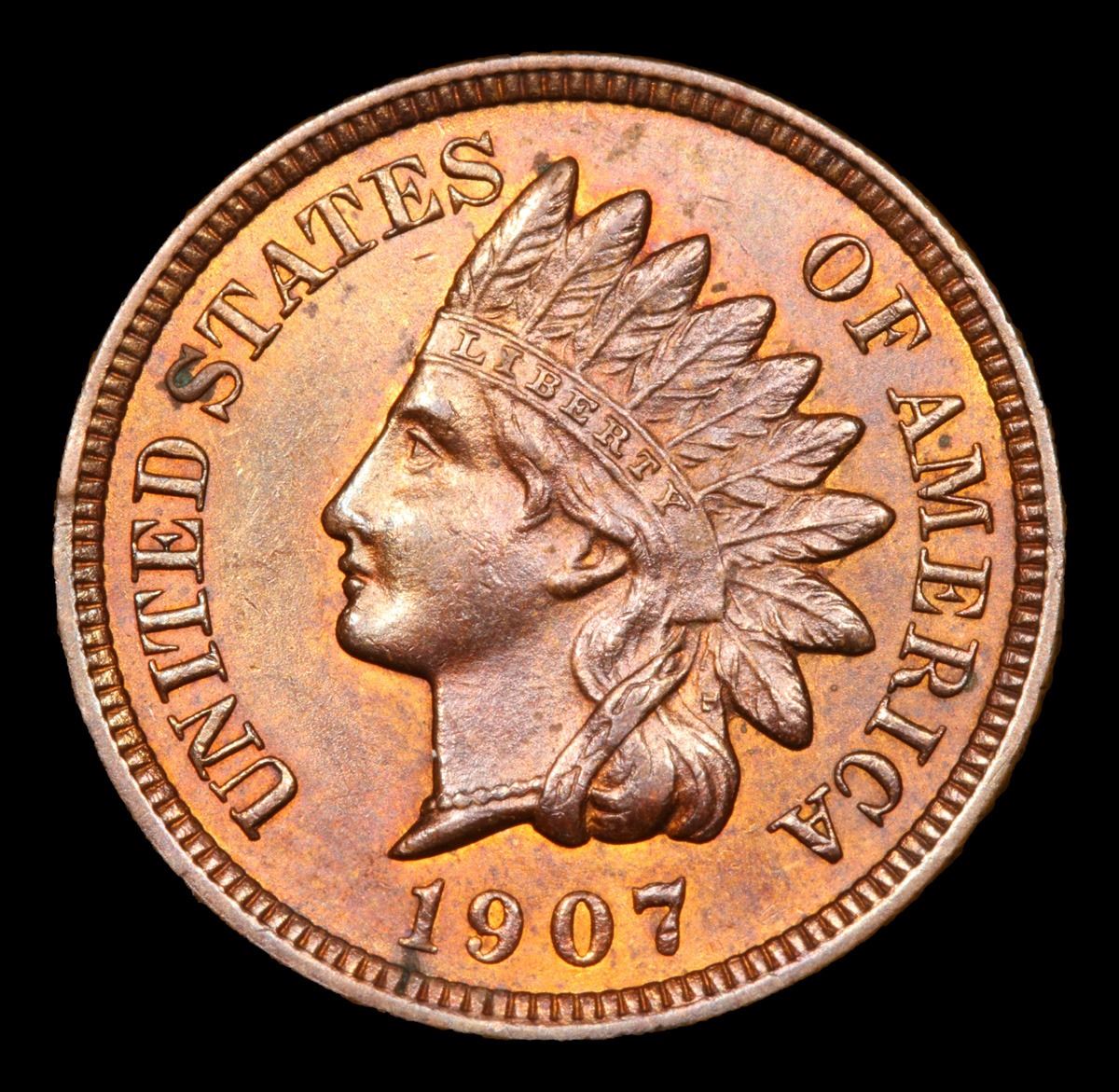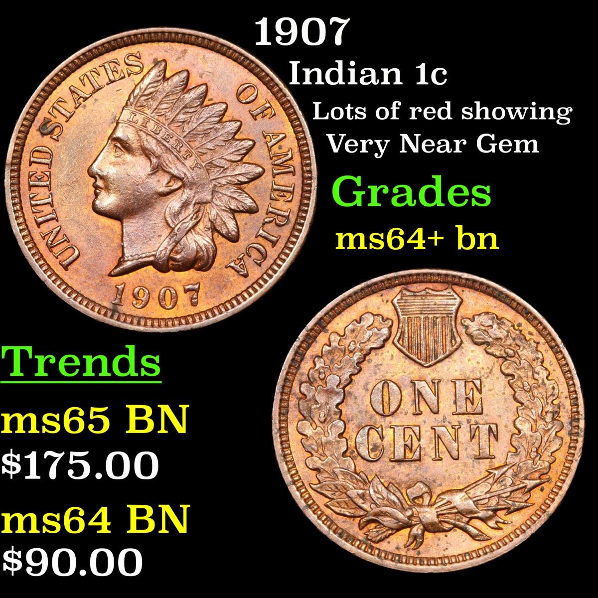 1907 Lots of red showing Very Near Gem Indian Cent 1c Grades Choice+ Unc BN.