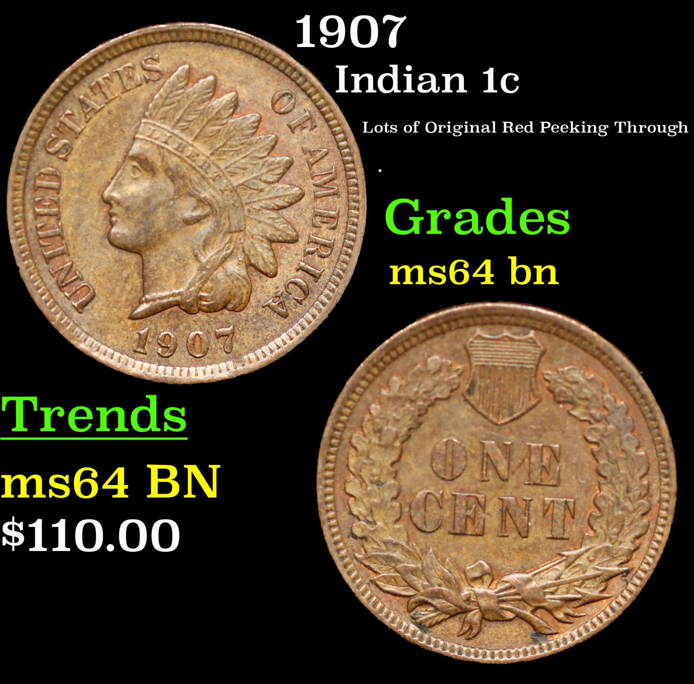 1907 Indian Cent 1c Grades Choice Unc BN.