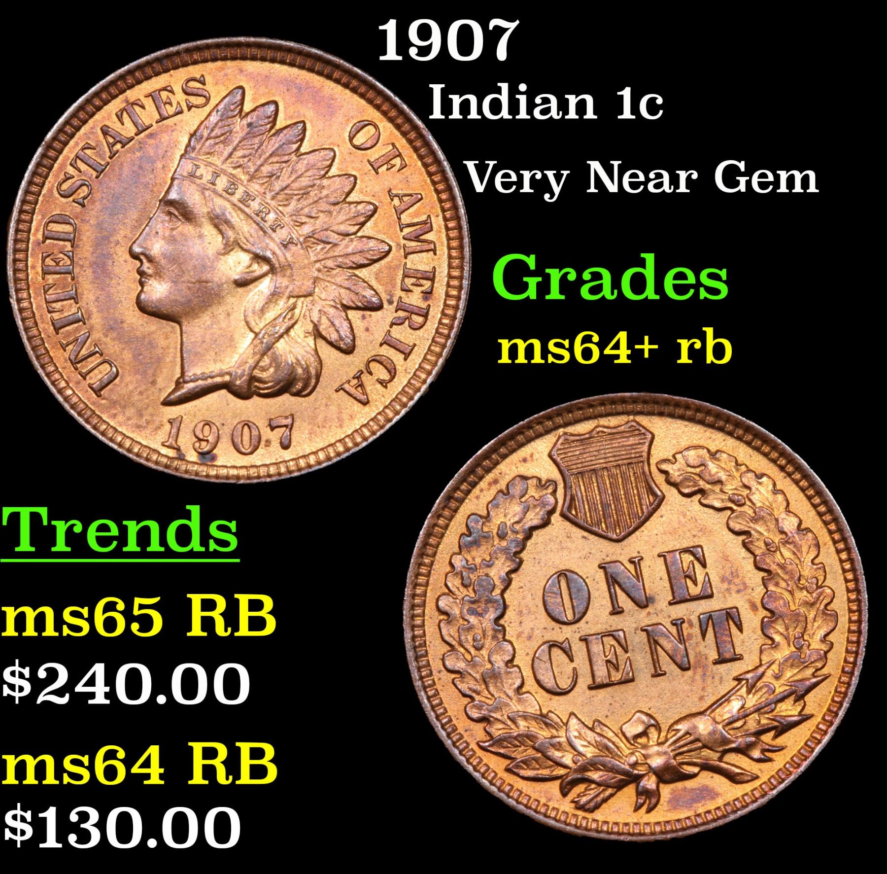 1907 . Very Near Gem Indian Cent 1c Grades Choice+ Unc RB.