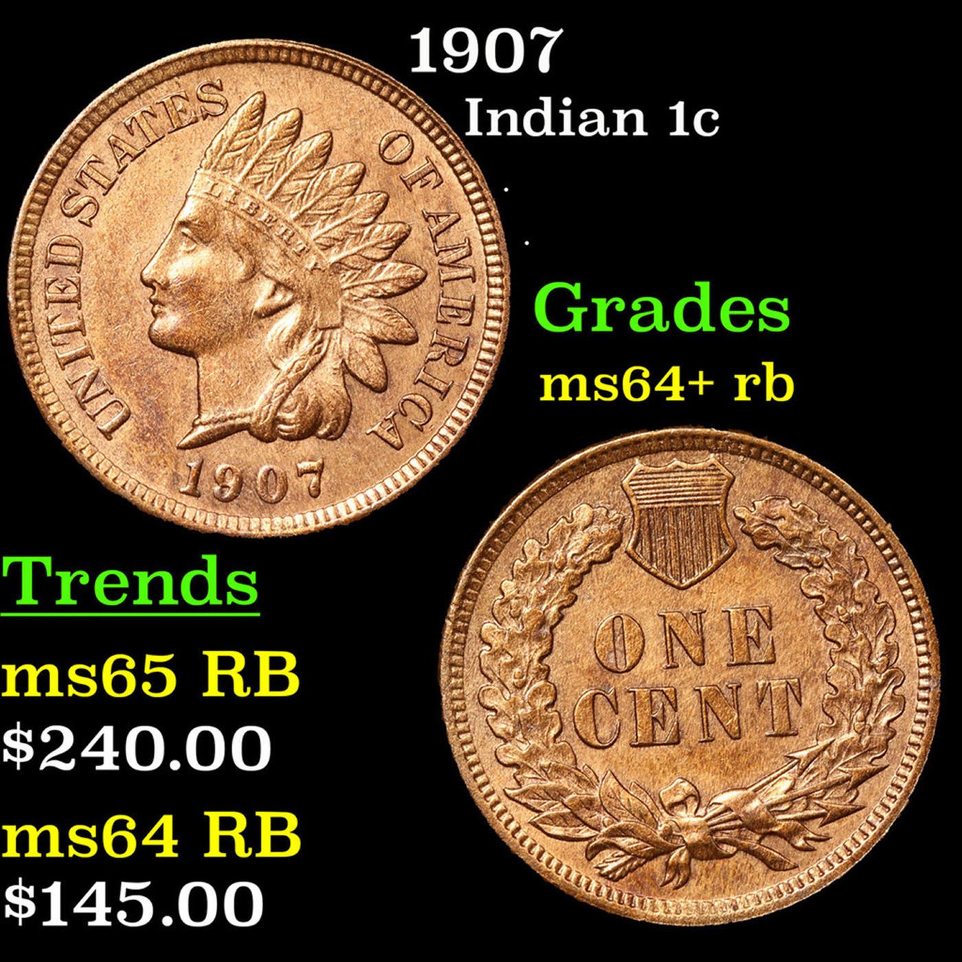 1907 Indian Cent 1c Grades Choice+ Unc RB.