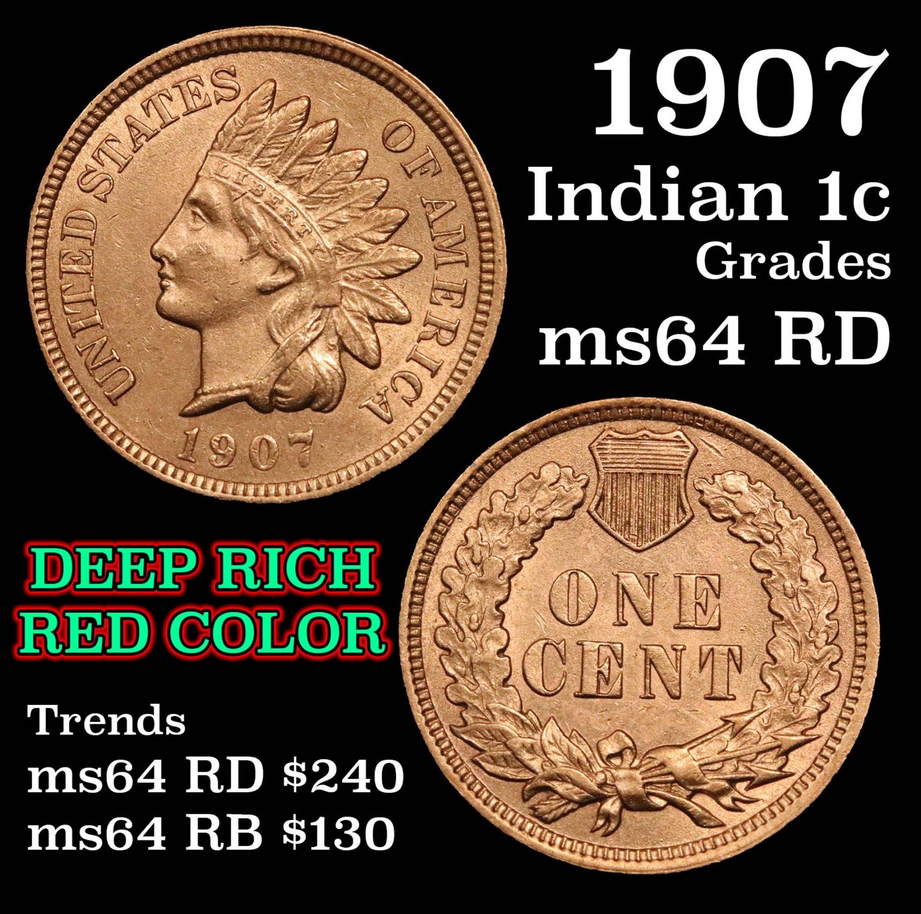 1907 Indian Cent 1c Grades Choice Unc RD.
