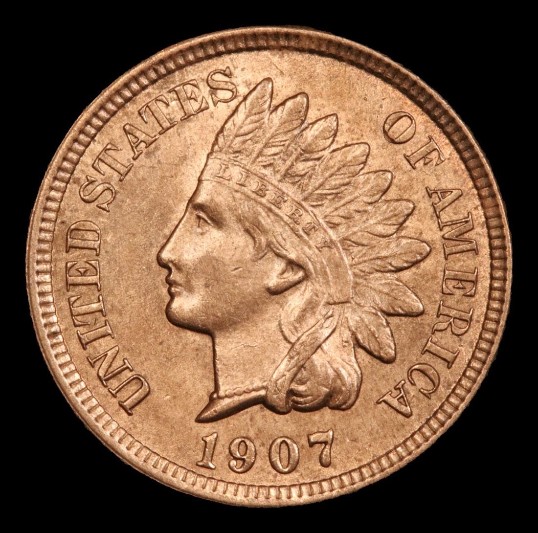1907 . Very Near Gem Indian Cent 1c Grades Choice+ Unc RD.