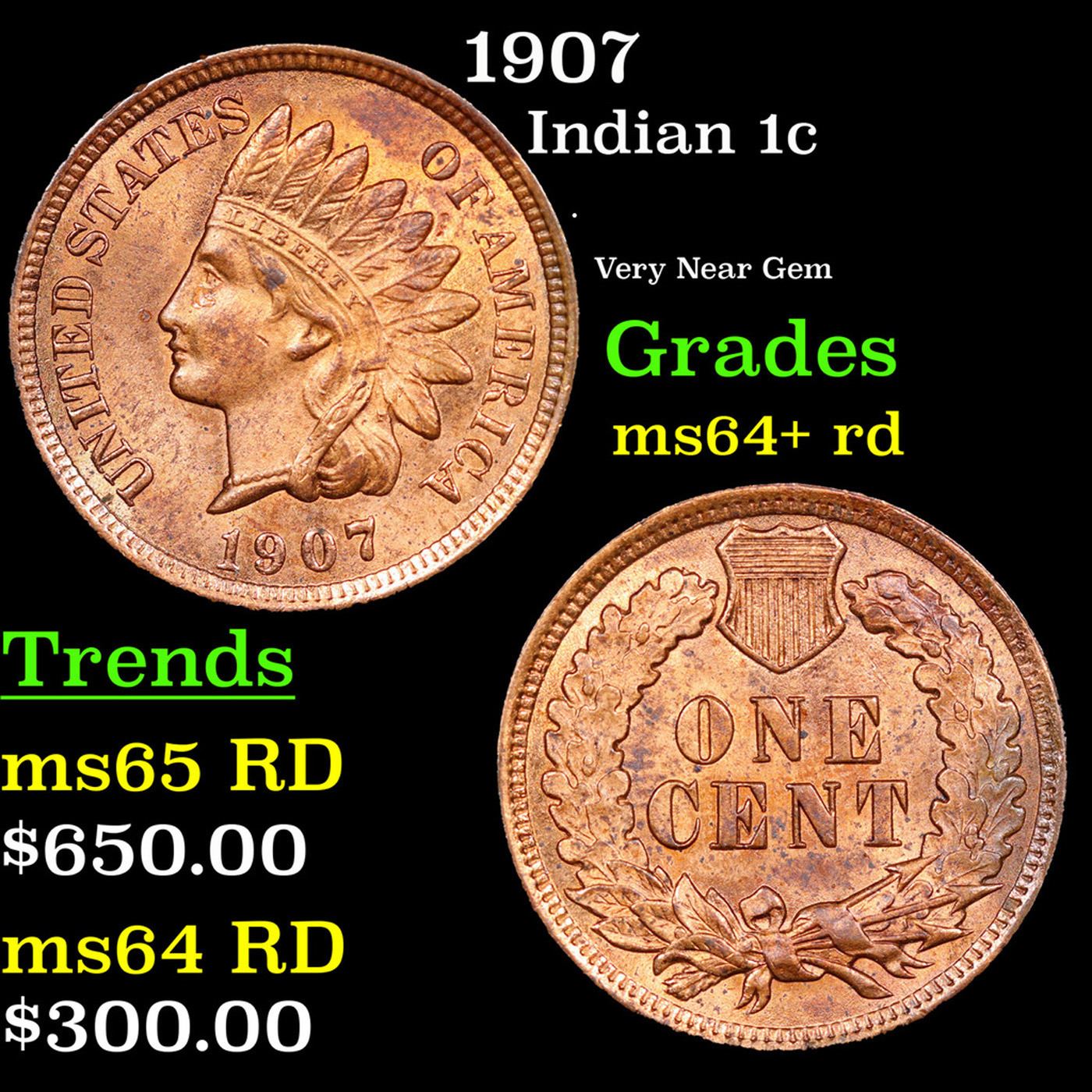 1907 Indian Cent 1c Grades Choice+ Unc RD.