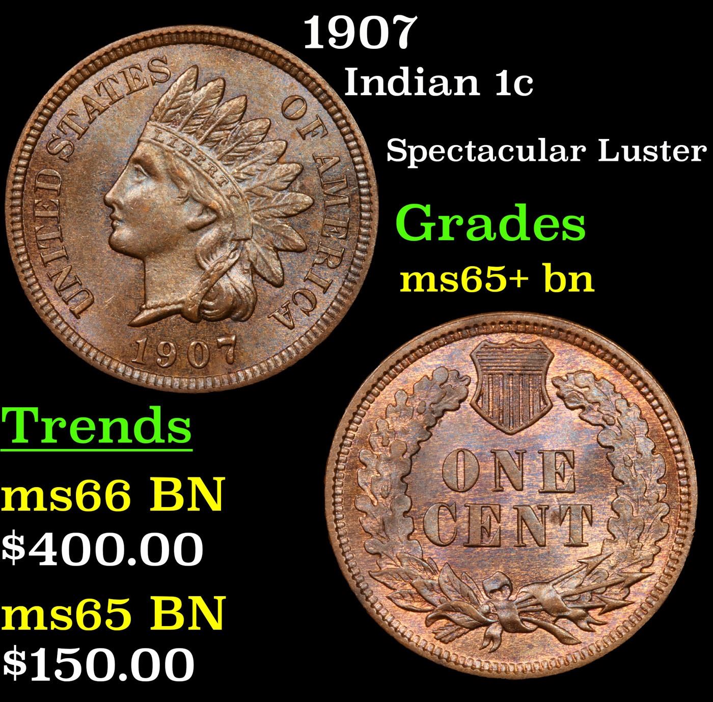 1907 Indian Cent 1c Grades GEM+ Unc BN.