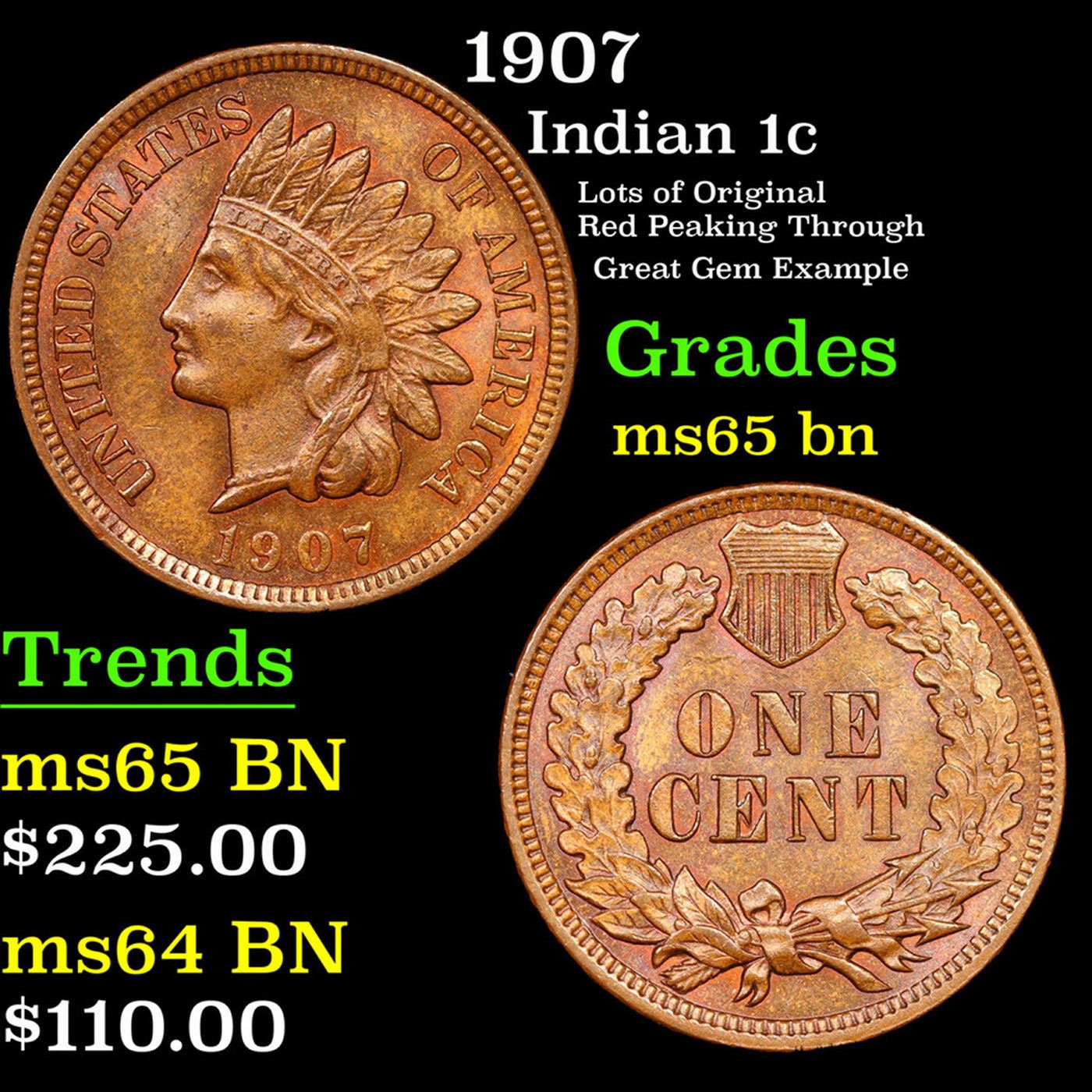 1907 Indian Cent 1c Grades GEM Unc BN.