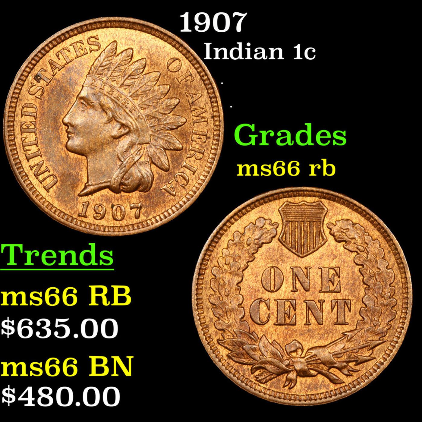 1907 Indian Cent 1c Grades GEM+ Unc RB.