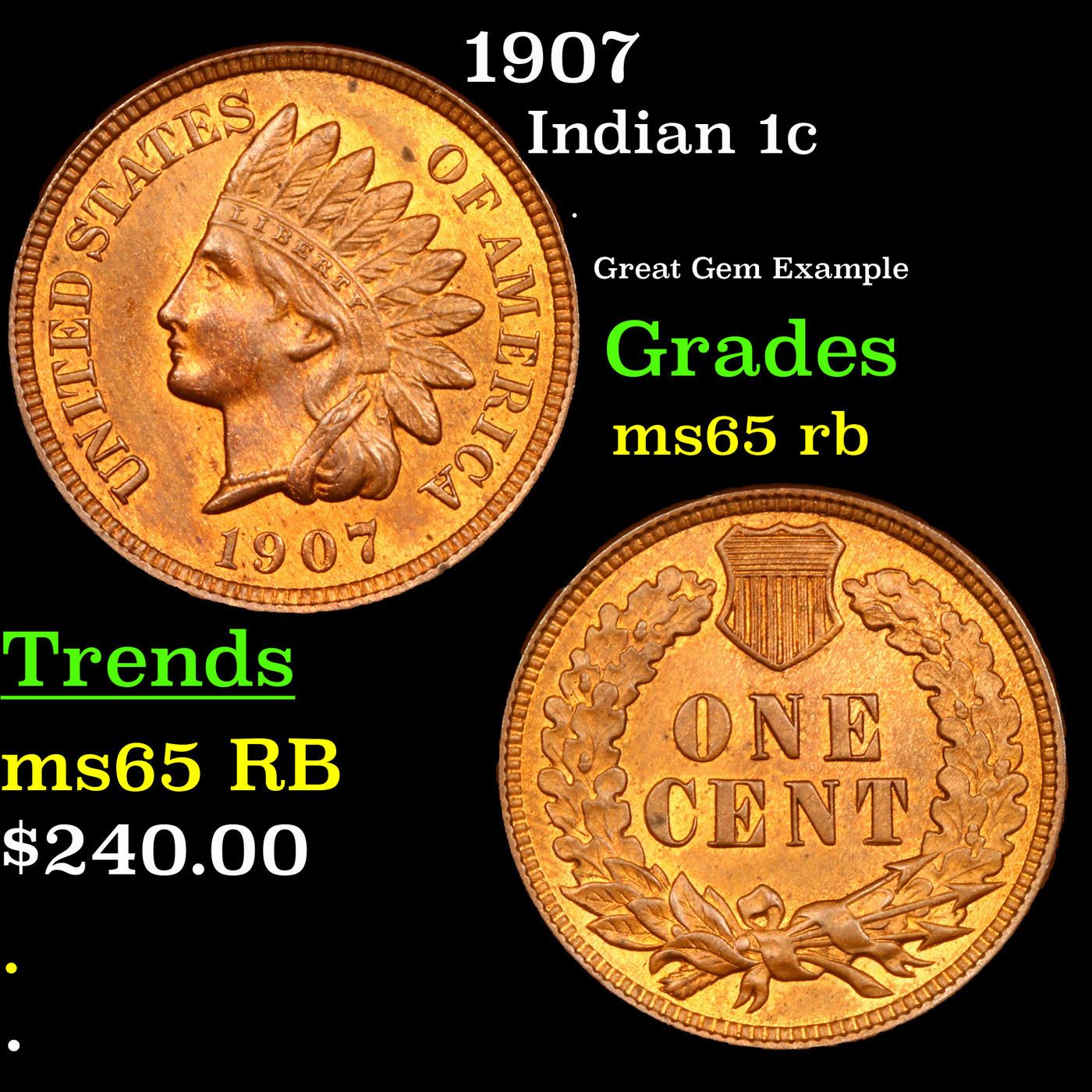 1907 Indian Cent 1c Grades GEM Unc RB.