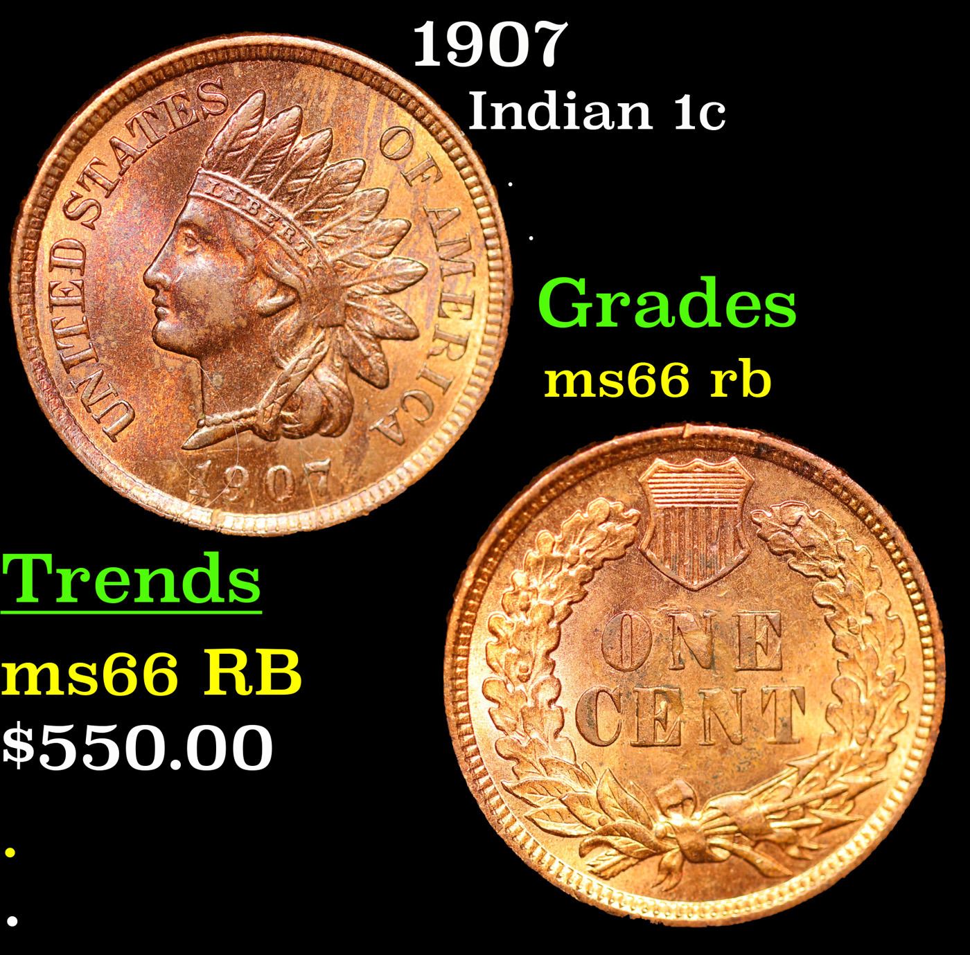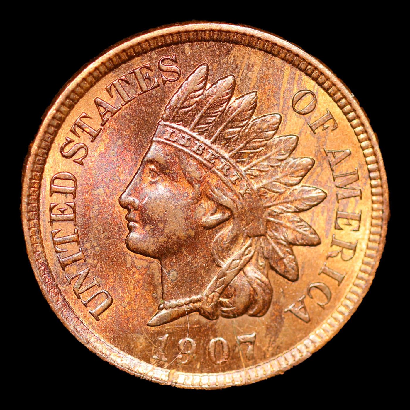 1907 Indian Cent 1c Grades GEM+ Unc RB.