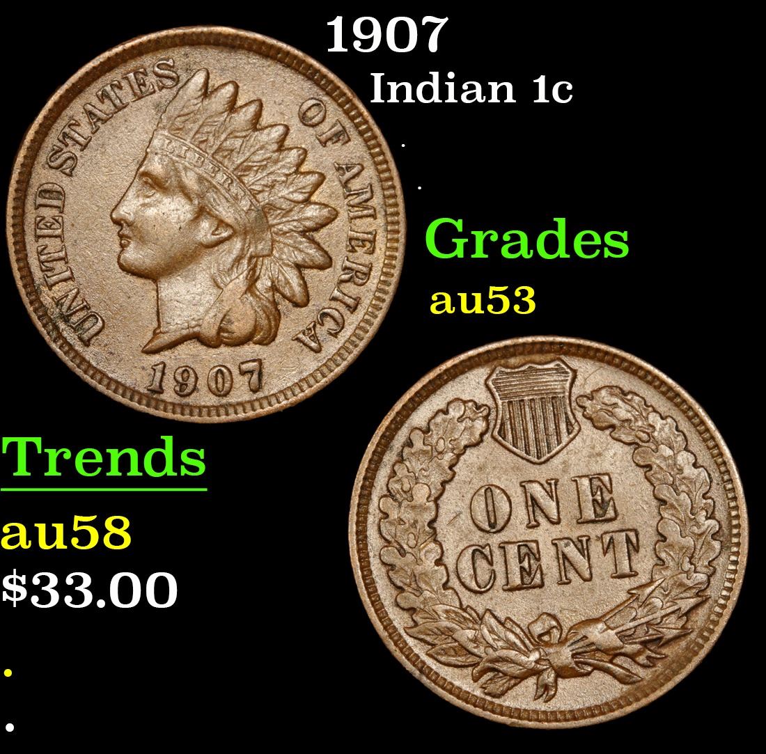 1907 Indian Cent 1c Grades Select AU.