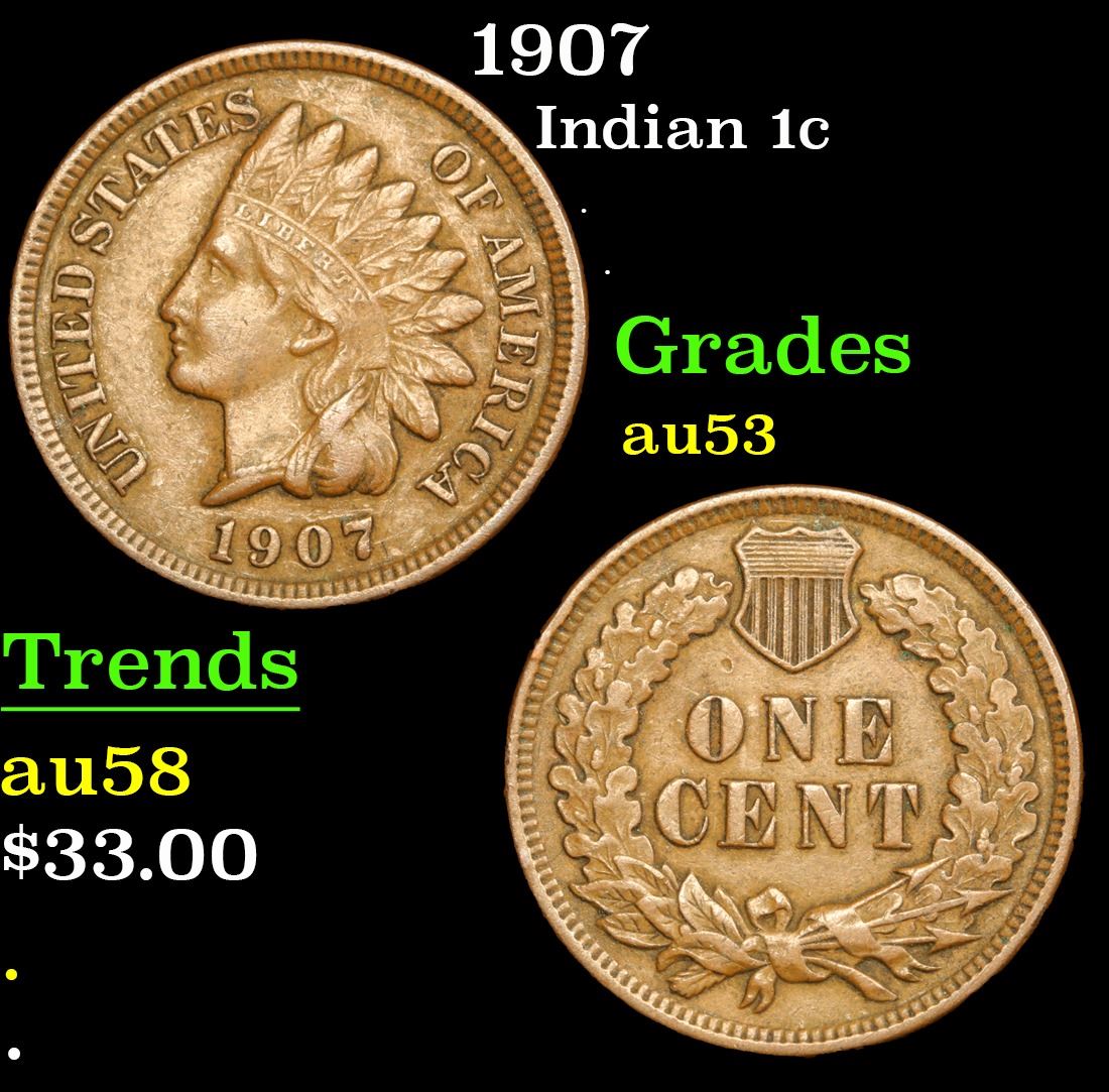 1907 Indian Cent 1c Grades Select AU.