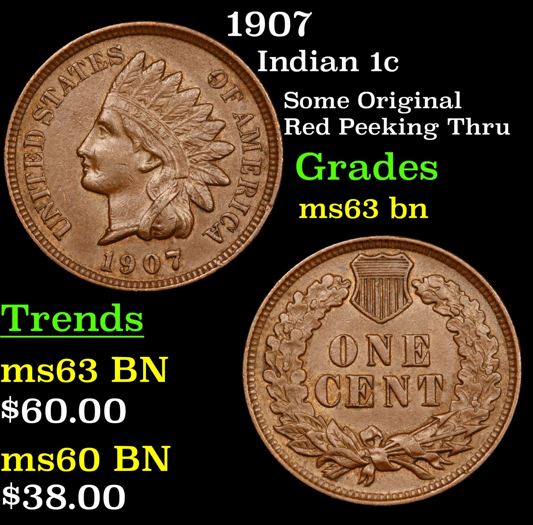 1907 Indian Cent 1c Grades Select Unc BN.