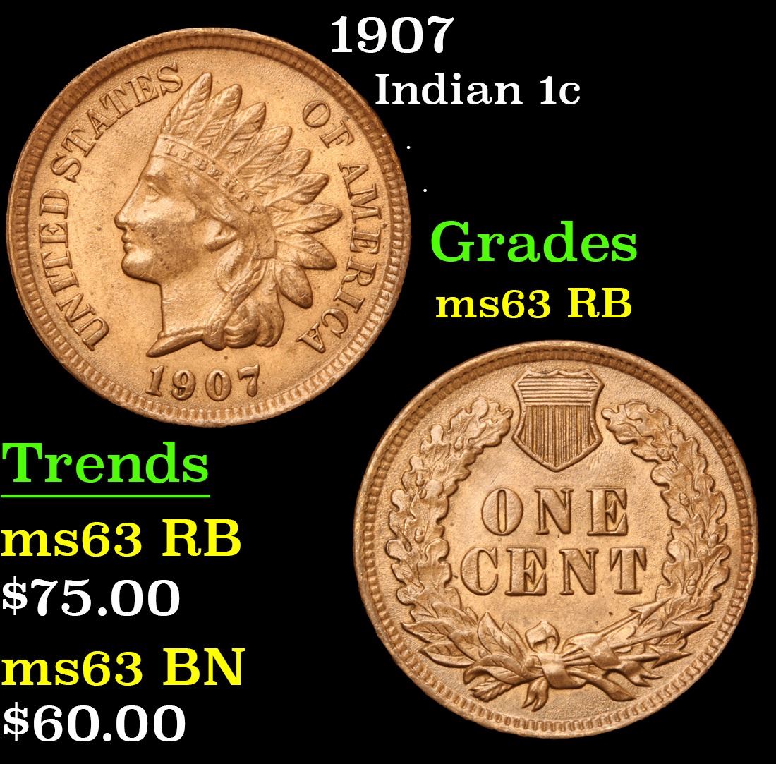 1907 Indian Cent 1c Grades Select Unc RB.