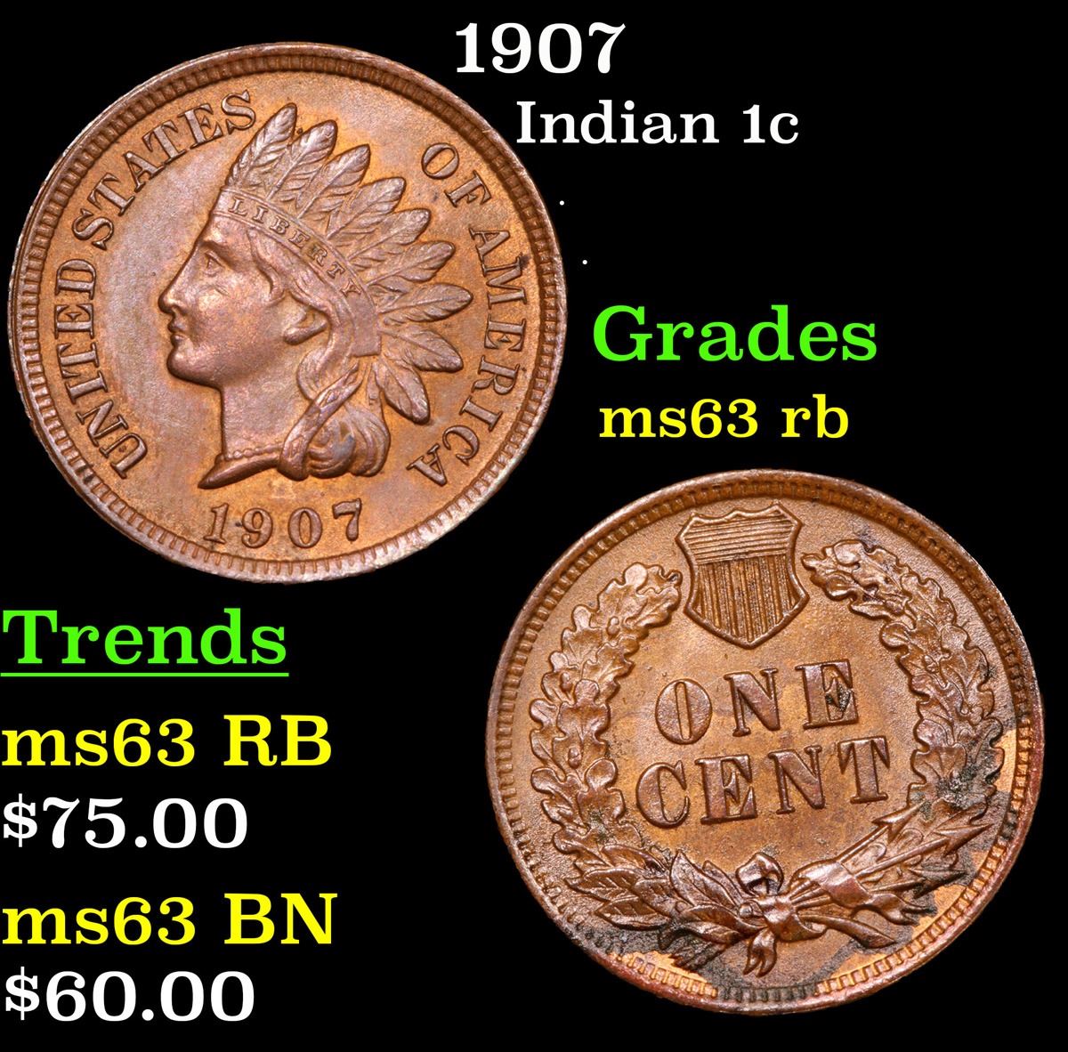 1907 . . Indian Cent 1c Grades Select Unc RB.