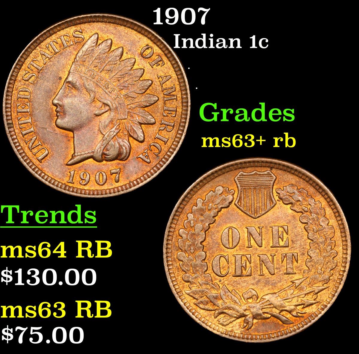 1907 . . Indian Cent 1c Grades Select+ Unc RB.