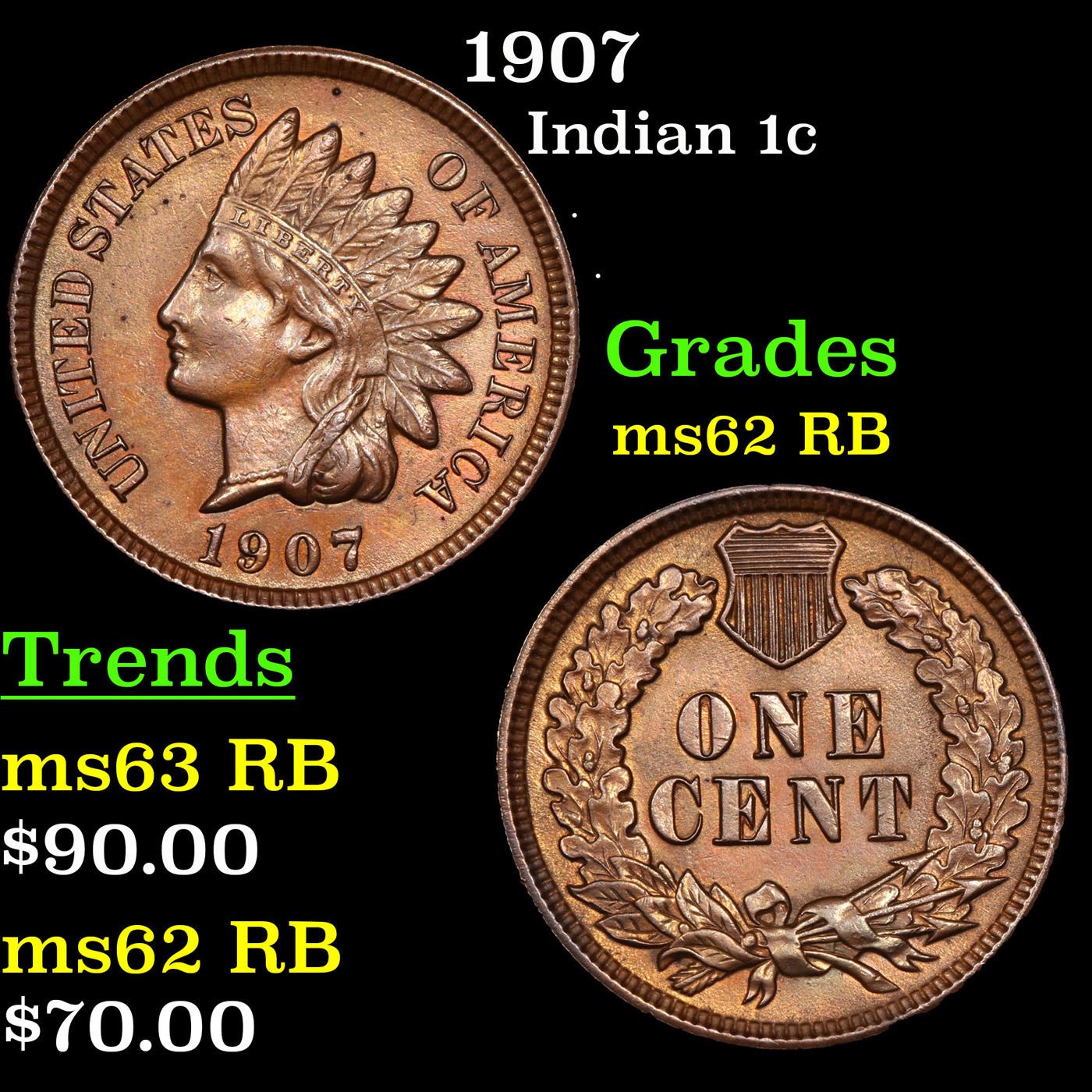 1907 Indian Cent 1c Grades Select Unc RB.