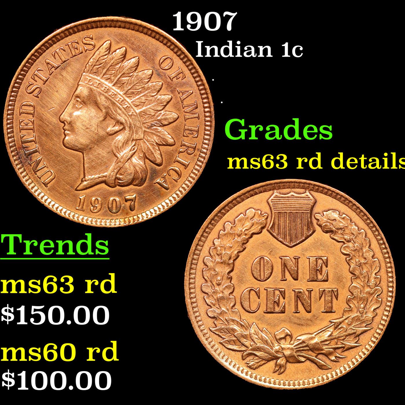 1907 Indian Cent 1c Grades Unc Details Rd.