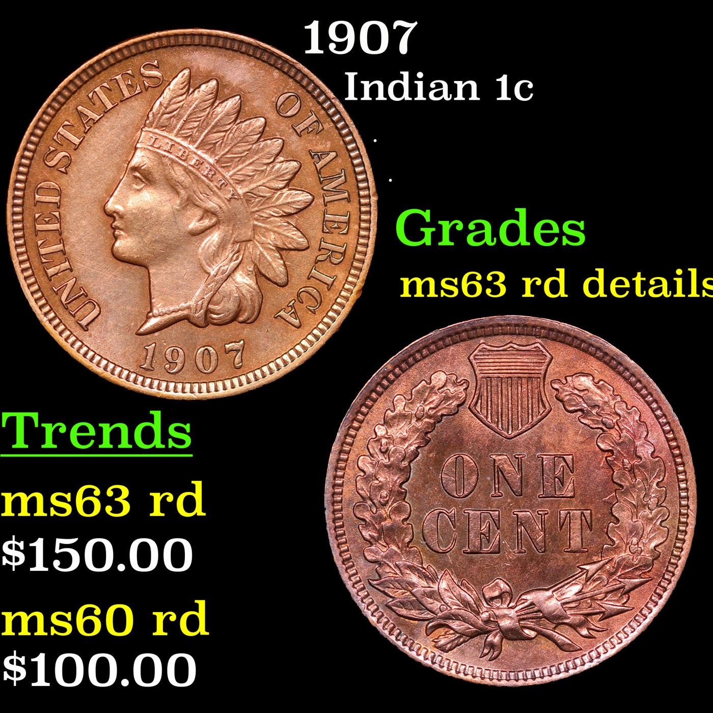 1907 Indian Cent 1c Grades Unc Details Rd.