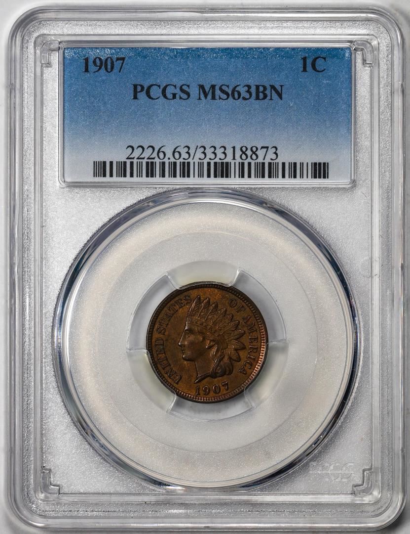 One 1907 Indian Cent Coin PCGS MS63BN. PCGS Graded.
