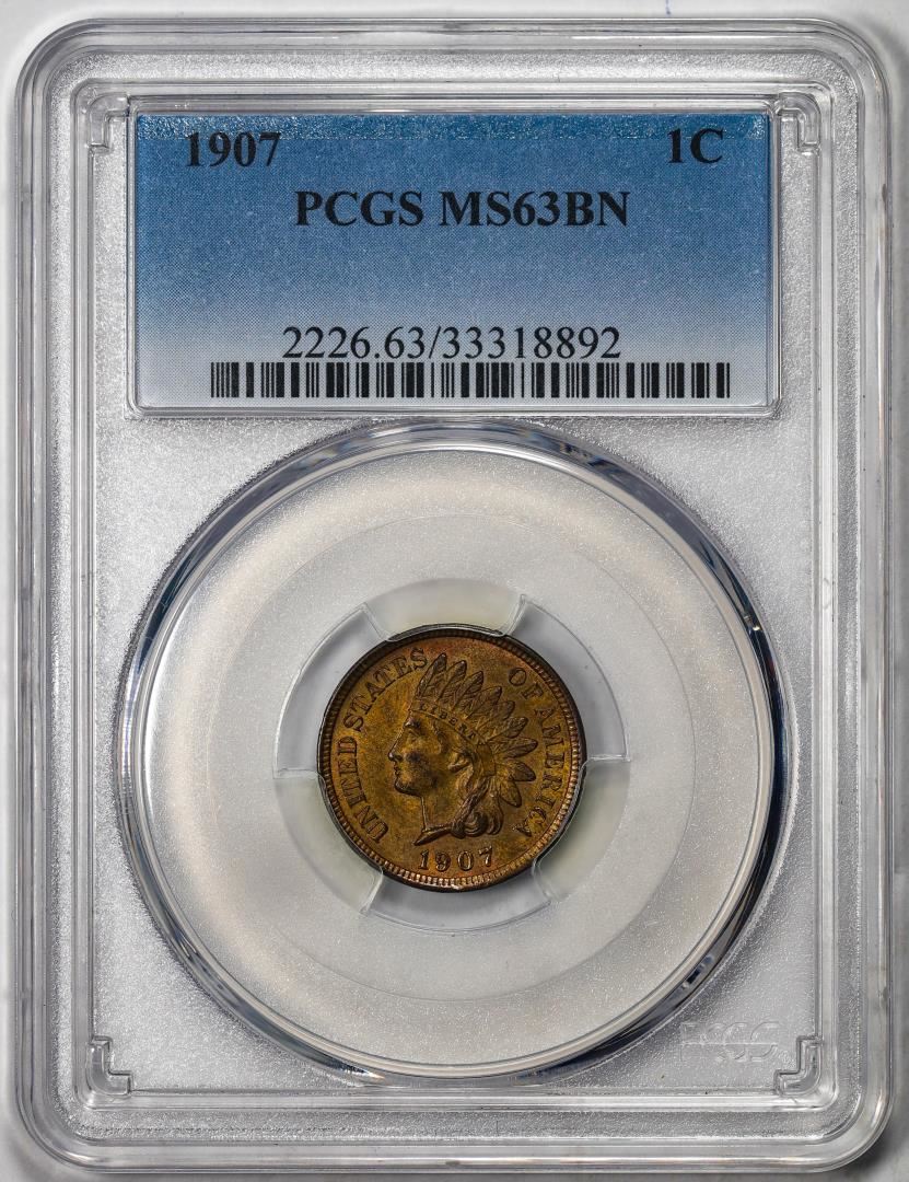 One 1907 Indian Cent Coin PCGS MS63BN. PCGS Graded.