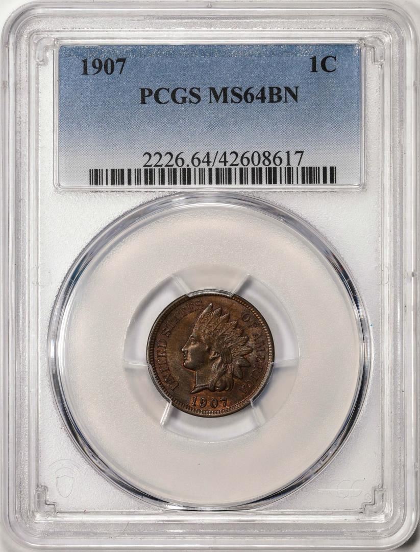 One 1907 Indian Head Cent Coin PCGS MS64BN. PCGS Graded.