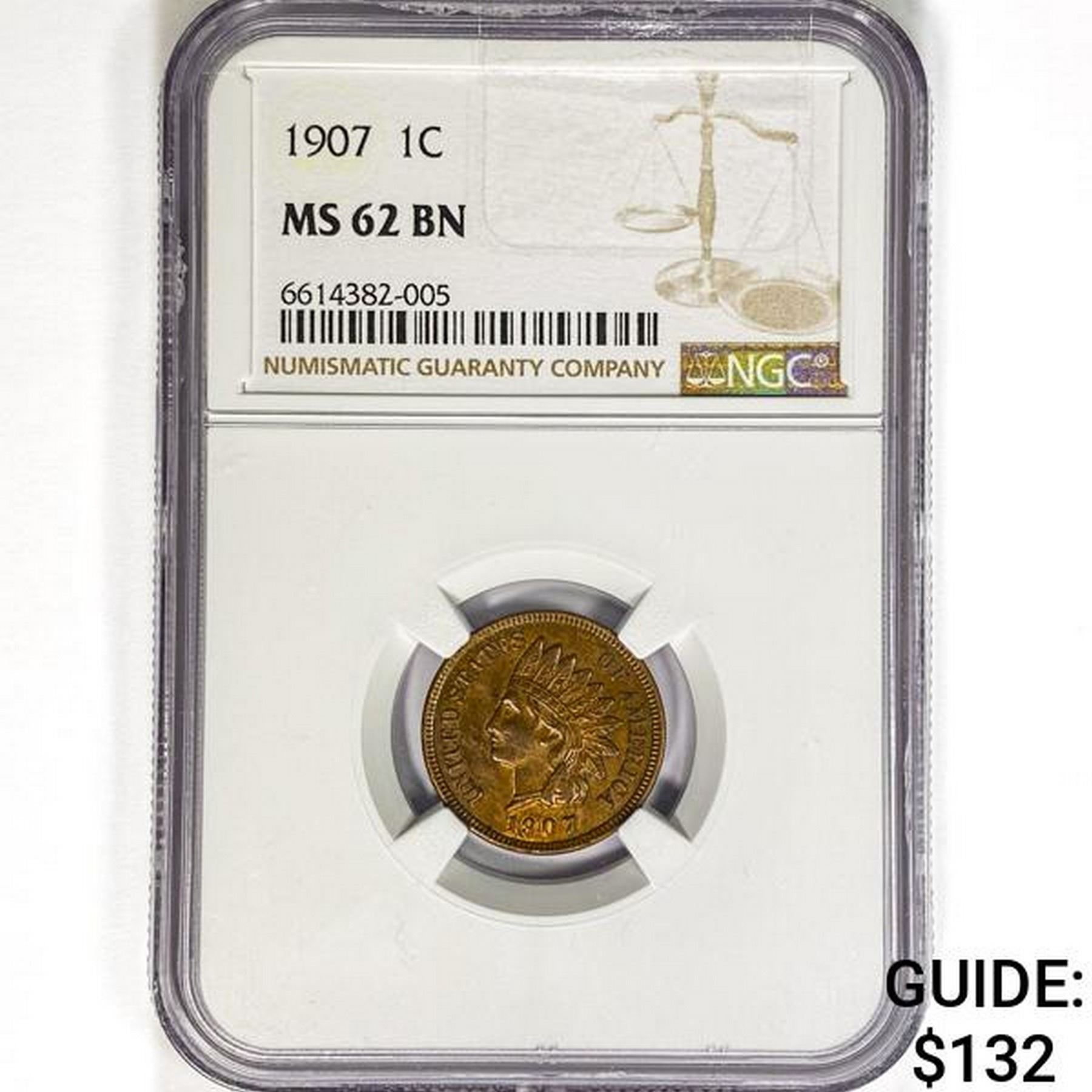 1907 Indian Head Cent NGC MS62 BN