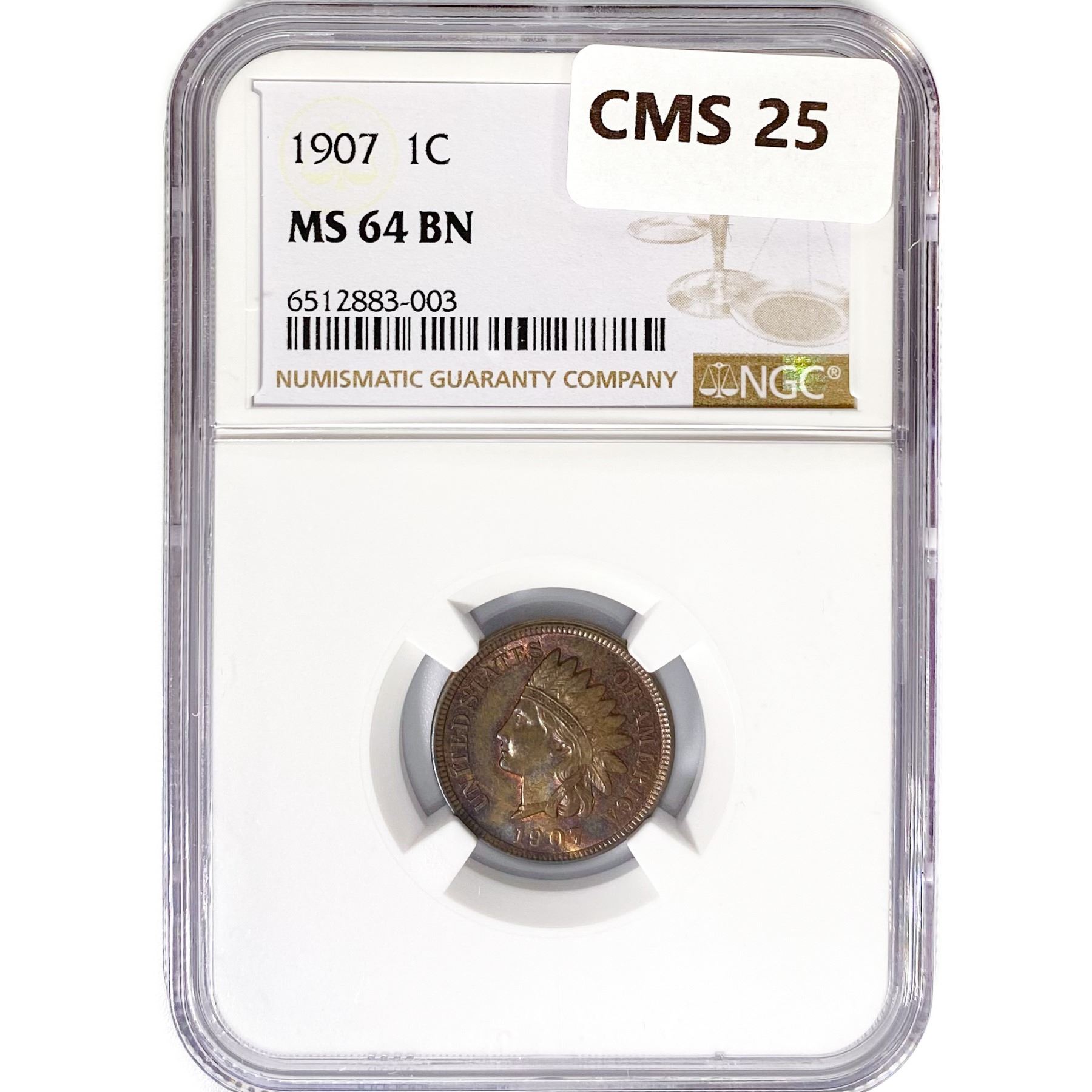 1907 Indian Head Cent NGC MS64 BN