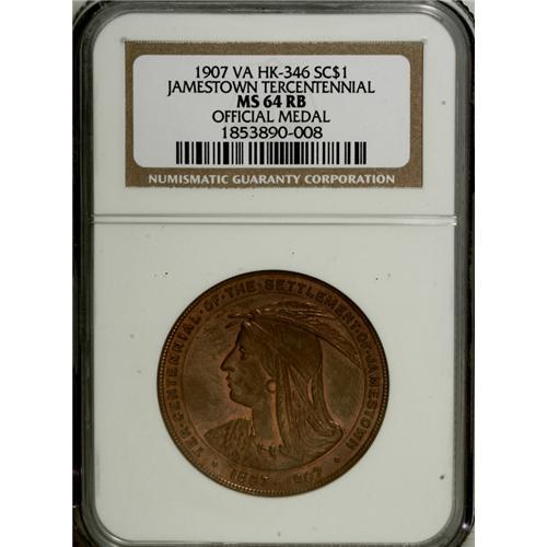 1907 Jamestown Tercentennial MS64 Red and Brown NGC. VA