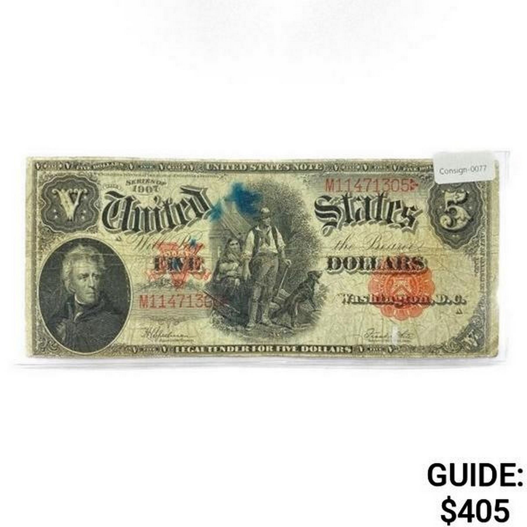 1907 LG $5 Legal Tender Note Woodchopper
