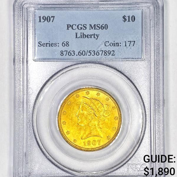 1907 Liberty $10 Gold Eagle PCGS - MS60