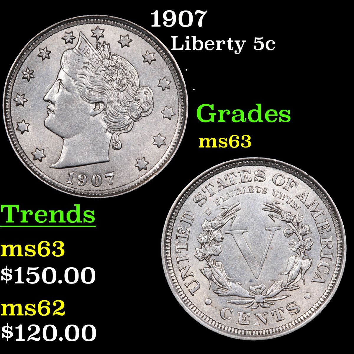 1907 . . Liberty Nickel 5c Grades Select Unc.