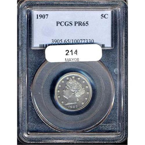 <b>1907 Liberty Nickel. PCGS graded Proof 65.</b> Bright nickel-deep surfaces are remarkably clean, just toned in areas, with grand eye-appeal. Full detail to the stars and hair on Liberty, more than enough to call it very bold <b>(PCGS # 3905)</b> <i>