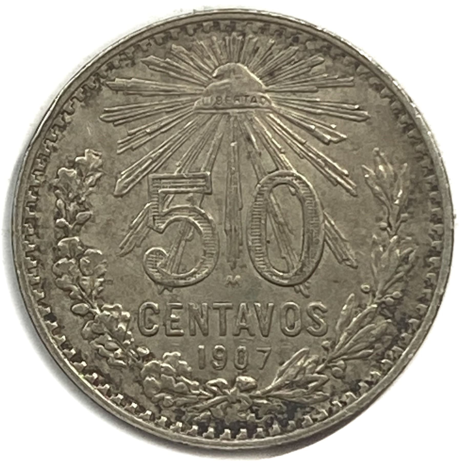 1907-M Silver Mexico 1 Peso AU