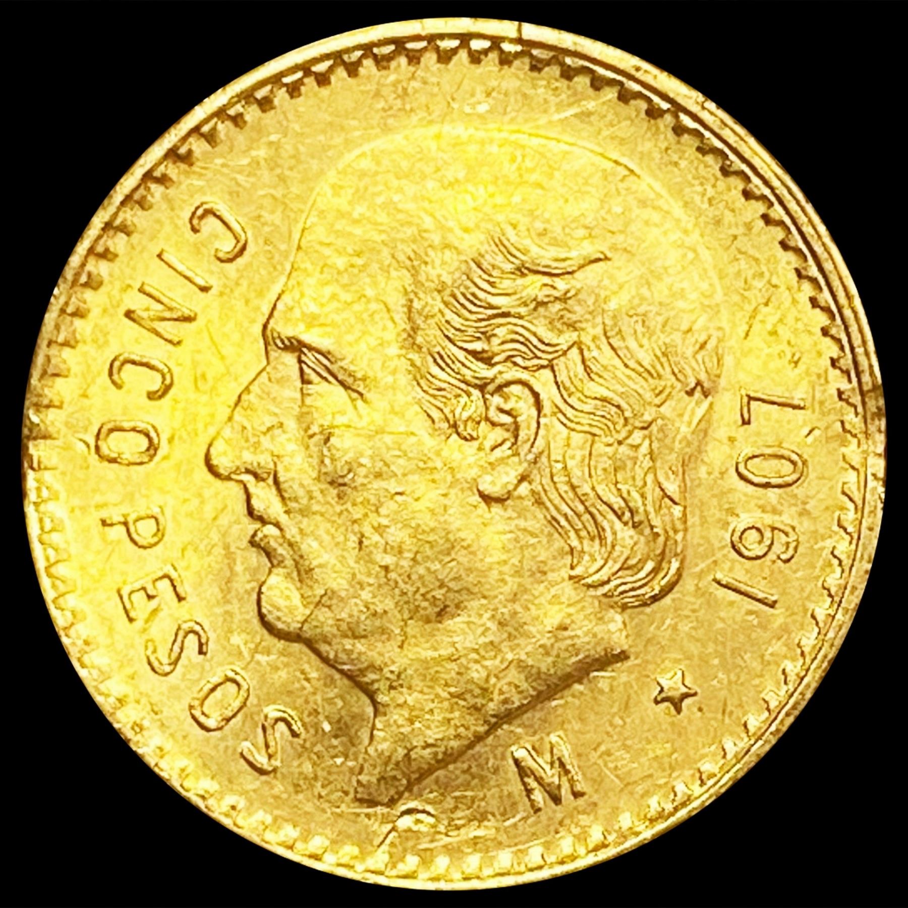 1907 Mexico .1206oz Gold 5 Pesos UNCIRCULATED