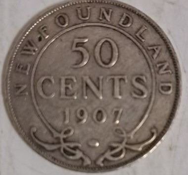1907 NEWFOUNDLAND HALF DOLLAR SILVER