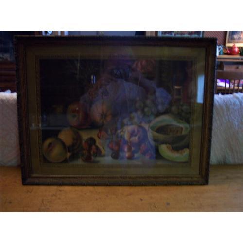 Another very nice fruit print called "Natures Goodies"-1907.This is in a very pretty frame.Copyright 1907 THE GRAY LITHO.CO NY.Measures 21 1/2 x16 1/2 including frame.