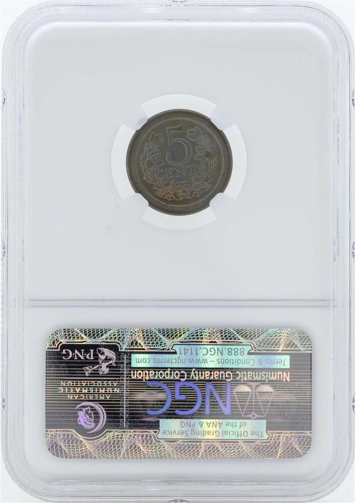 One 1907 Netherland 5 Cents Coin NGC MS66. NGC Certified.