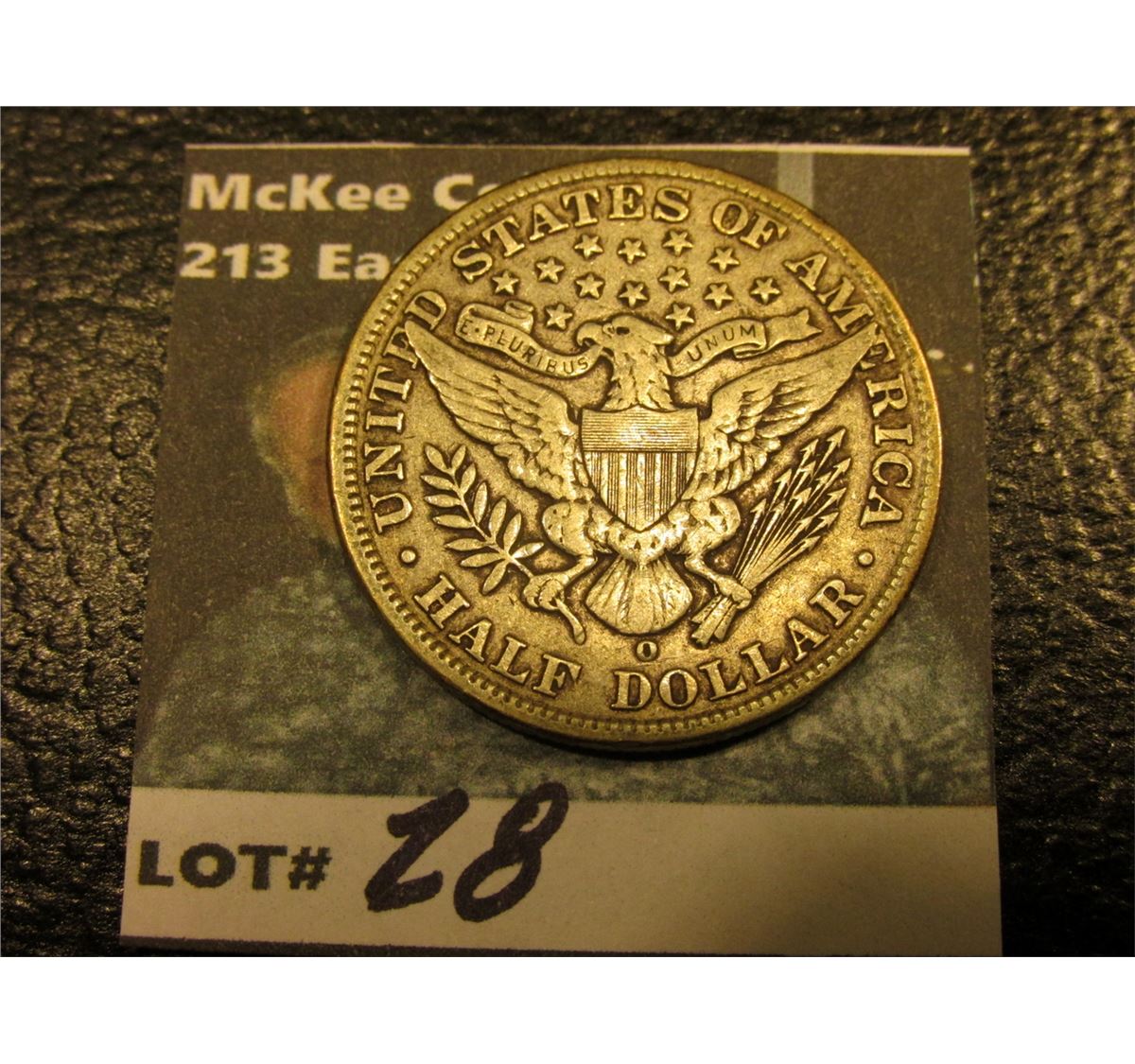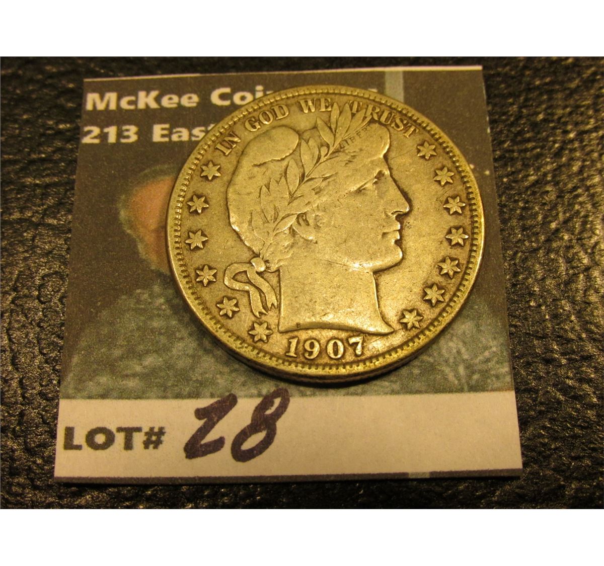 1907 New Orleans Mint U.S. Barber Half-Dollar, Fine, Red Book value $45.00.