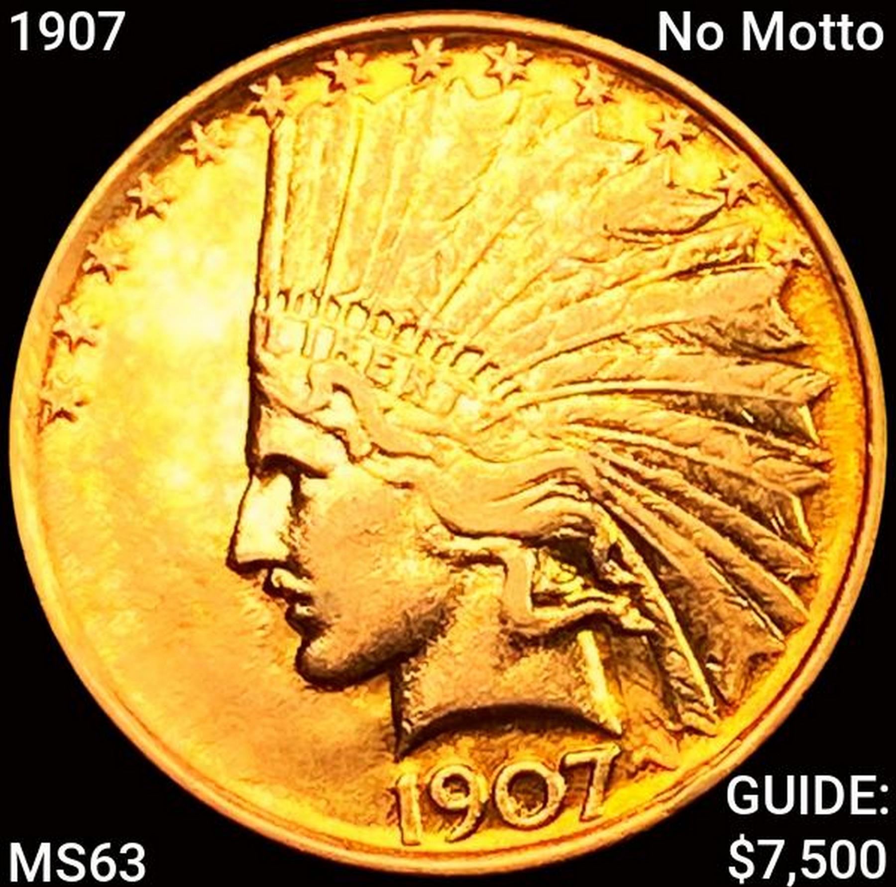 1907 No Motto $10 Gold Eagle CHOICE BU