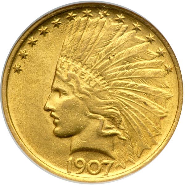 1907 No Motto. NGC graded MS-62. Uniform delicate golden color (PCGS # 8852) .