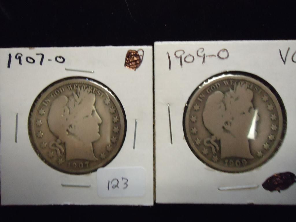 1907-O & 09-O BARBER HALF DOLLARS BOTH (VG)