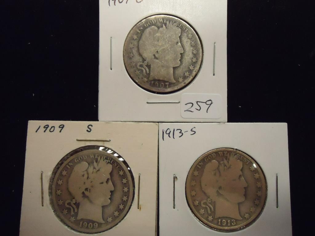 1907-O,09-S & 13-S BARBER HALF DOLLARS