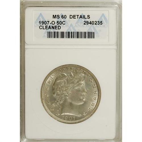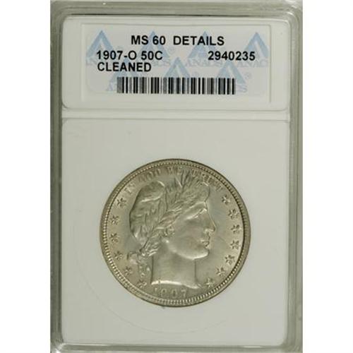 <B>1907-O 50C --Cleaned--ANACS. MS60 Details.</B></I> NGC Census: (0/140). PCGS Population (0/0). Mintage: 3,946,600. Numismedia Wsl. Price for NGC/PCGS coin in MS60: $408. (#6510)<BR><BR><B>Coin Engraver:</B> Charles E. Barber<BR><BR><b>Shipping:</b> Coins & Currency (<a target="_blank" href="http://www.heritageauctions.com/common/shipping.php">view shipping information</a>\)