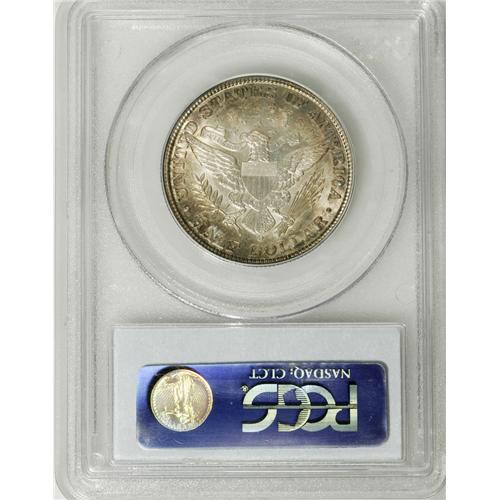1907-O 50C MS63 PCGS. Golden-brown and cobalt-blue sur
