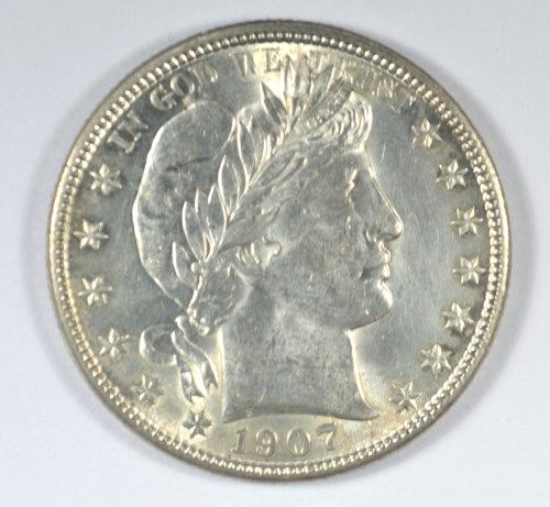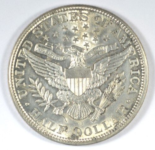 1907-O BARBER HALF DOLLAR, MS-64 FROSTY WHITE, RARE!