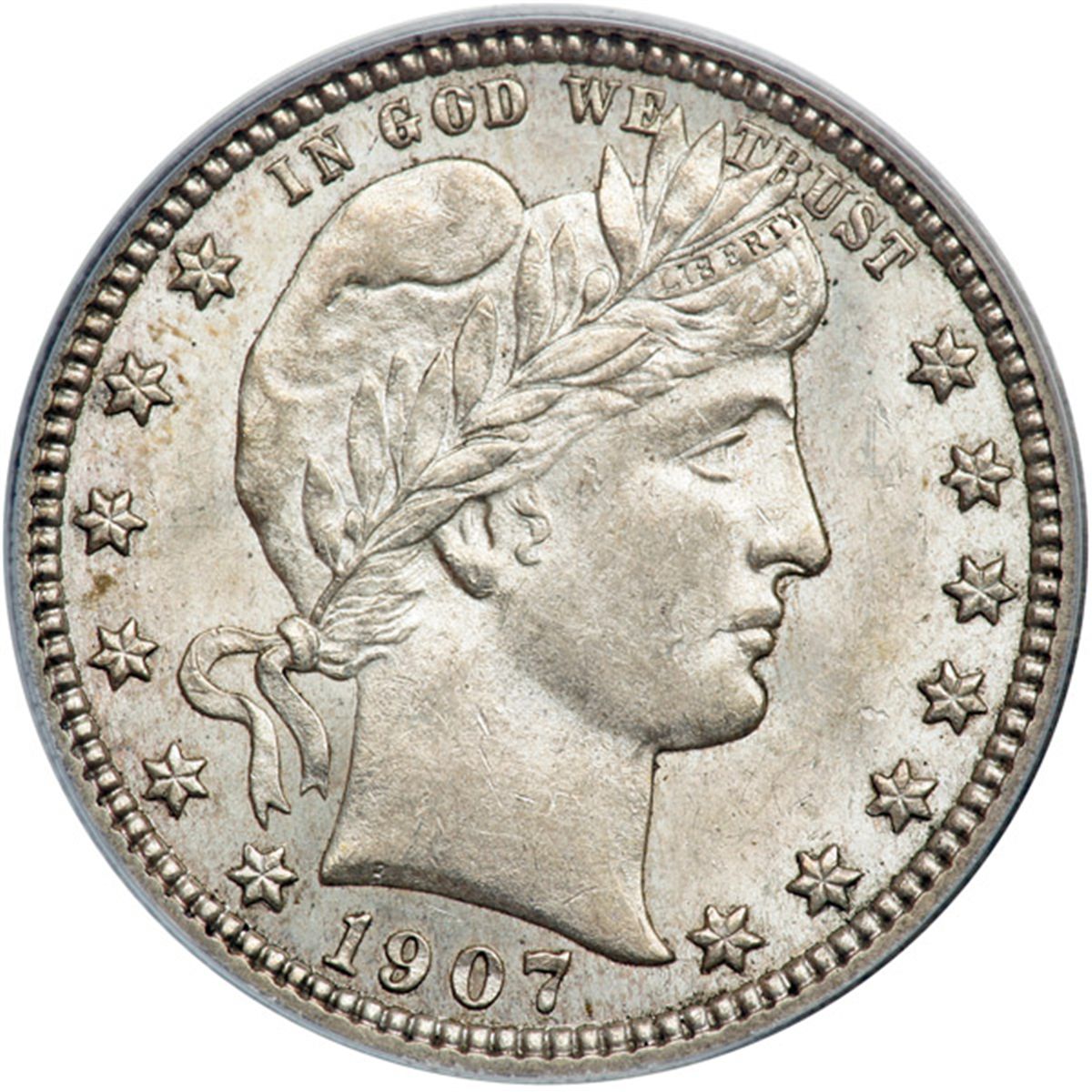 1907-O Barber Quarter Dollar. PCGS graded AU-58 CAC Approved. Lightly toned (PCGS # 5647) .