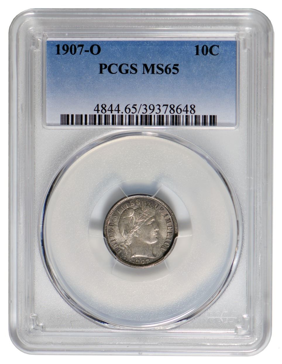 One 1907-O Barber Dime PCGS MS65.